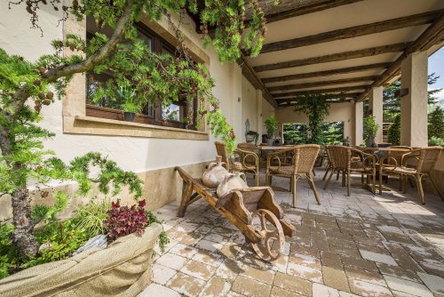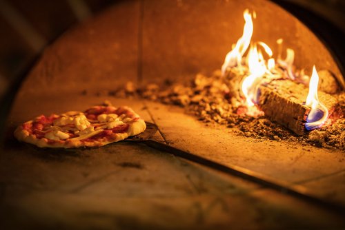 mit 40 Sitzplätzen, offener Küche mit Holzsteinofen