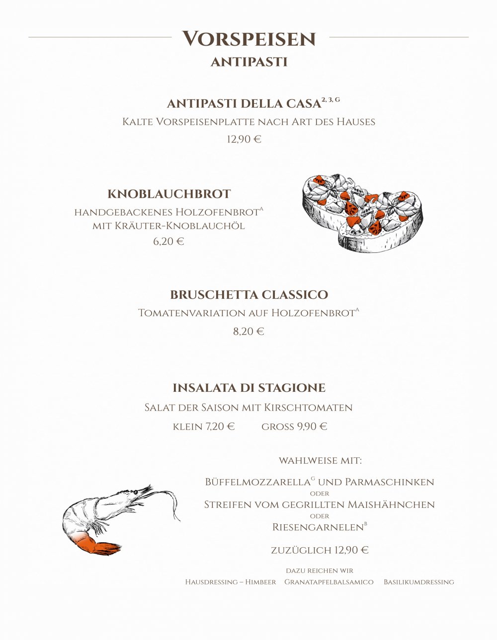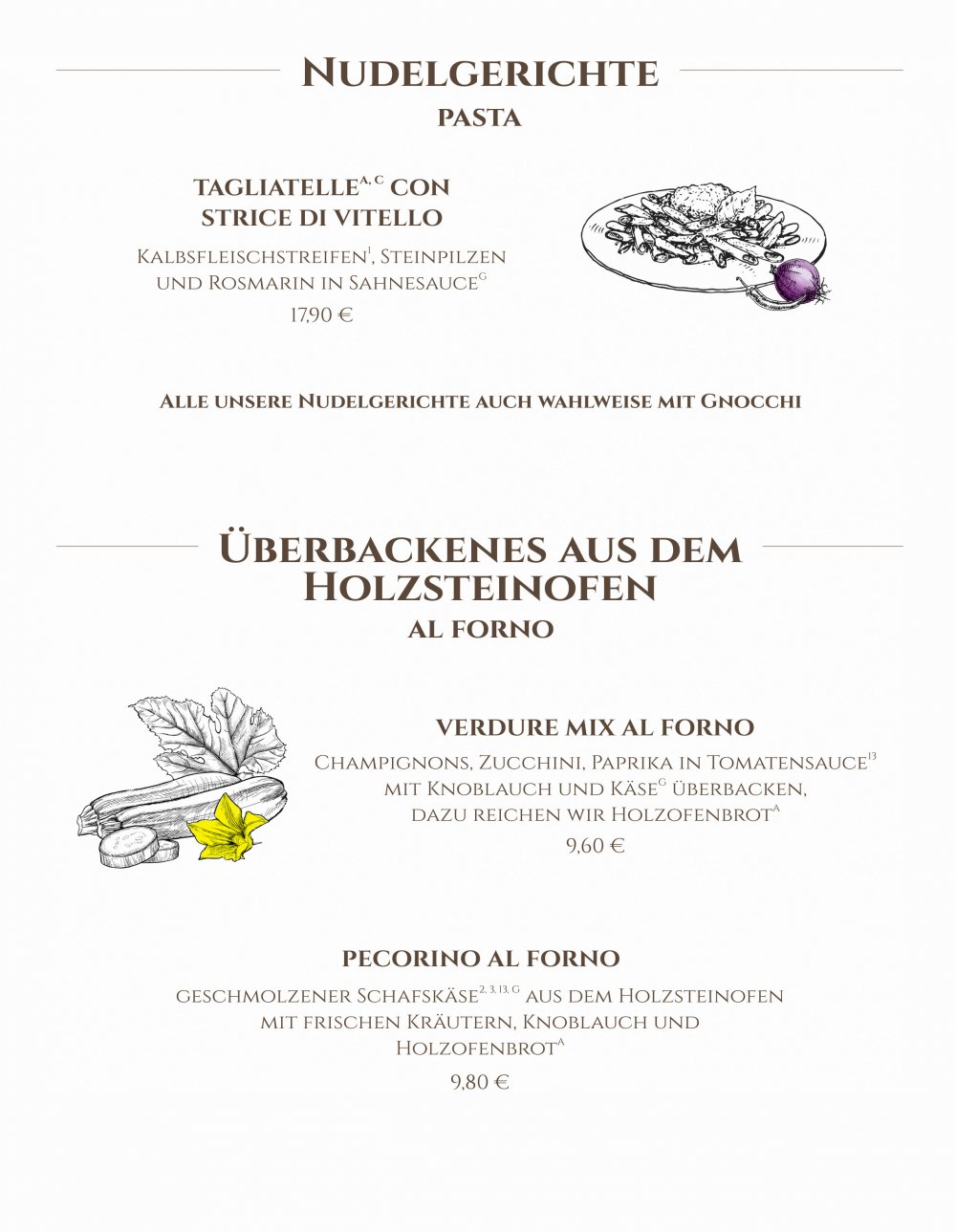 Our menu is supplemented monthly with seasonal dishes.
