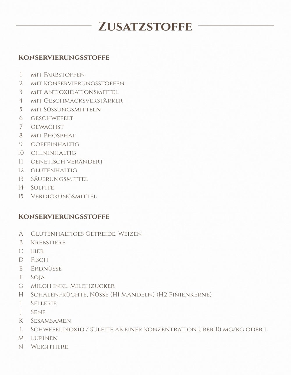 Our menu carde
